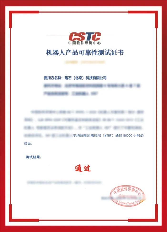 相较加速测验的评定方式,此次珞石机器人采取了更为严苛也更有难度的实测方式,经过在极端工况下的重重测试,最终顺利通过中国软件评测中心测评并取得可靠性认证证书。这不仅意味着珞石获得了真正的国家级标准认证,也是珞石坚持卓越品质的重要佐证。