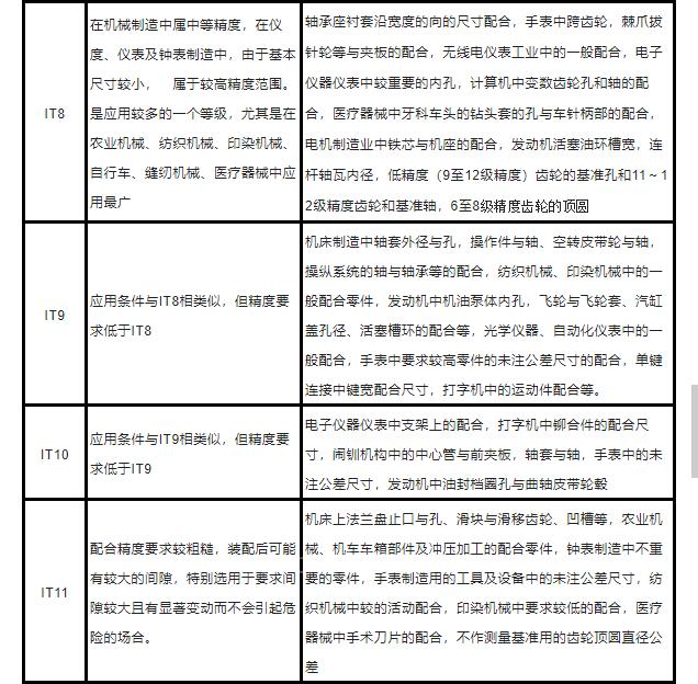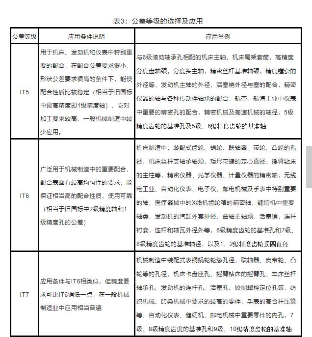在满足使用要求的前提下,应尽可能选择较低的公差等级,以降低加工成本。公差等级的应用范围可参考表1,各种加工方法所能达到的公差等级可参考表2,公差等级的选择及应用可参考表3。