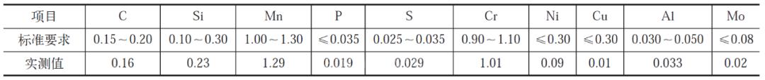 轴齿材料16MnCrS5+H,在缺陷样品上取样进行光谱检验,该材料化学成分标准要求和轴齿的化学成分分析见表1,结果符合要求。