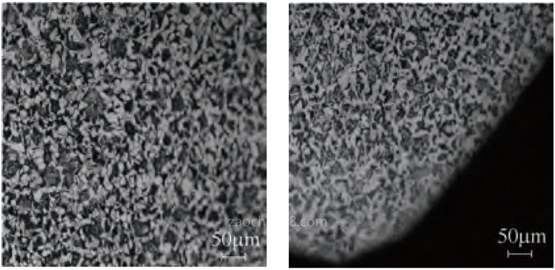 图5 正常基体和正常轴齿尖部金相组织(200×)