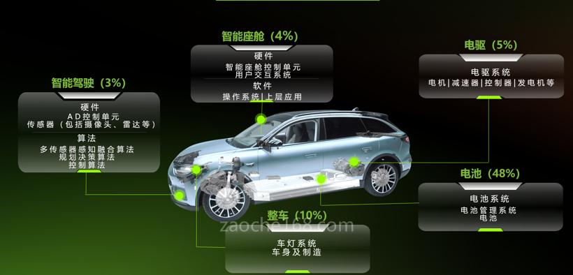 在朱江明看来,除了保障供应,自研的好处还在于降本增效。上述包括整车、电池、电驱、智能座舱、智能驾驶软硬件在内,零跑自研自产的部分已经覆盖70%的整车成本,“10万块钱的成本,其中有7万块钱零部件是零跑自制的,如果外购有10%毛利空间差价,零跑就比别人有7000块钱的竞争力。”