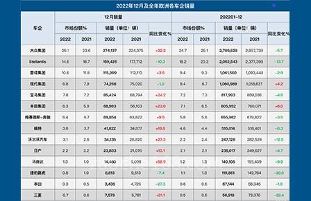 大众汽车集团、Stellantis和雷诺集团成为欧洲12月最畅销的汽车制造商,其中,大众汽车集团在欧洲的市场份额略微超过四分之一;Stellantis欧洲销量下跌10.3%,系前三中唯一一家销量下跌的车企;雷诺集团的欧洲销量连续三个月超过现代汽车集团。