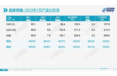 2月8日,乘联会发布了乘用车最新产销数据。1月,我国狭义乘用车产量为135.3万辆,环比下降36%,同比下降33.9%。销量方面,1月狭义乘用车零售129.3万辆,环比下降40.4%,同比下降37.9%,市场呈现相对低迷的特征。
