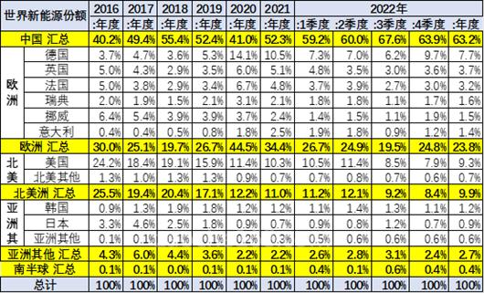 外因是,期间其他区域市场的新能源快速增长,抢占了大量的份额。这一点在作为全球新能源最大单一市场——中国的表现中体现得最为明显。