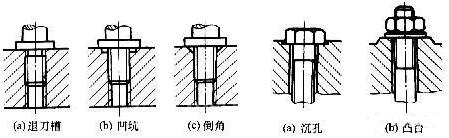 为了保证螺纹紧,应在螺纹尾部留出退刀槽或在螺孔端部加工出凹坑或倒角;为了保证连接件与被连接件间良好接触,被连接件上应成沉孔或凸台,如图5所示。被连接件通孔的直径应大于螺纹大径或螺杆直径,以便于装配。