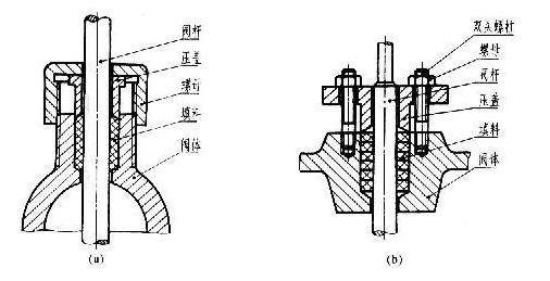 防漏结构机器或部件能否正常运转,在很大程度上取决于密封或防漏结构的可靠性。为此,在机器或部件的旋转轴、滑动杆(阀杆、活塞杆等)伸出箱体(或阀体)处,常做成一填料箱( 涵),填入具有特殊性质的软质填料,用压盖或螺母将填料压紧,使填料以适当的压力贴在轴(杆)上,达到既不阻碍轴(杆)运动,又能阻止工作介质(流体或气体)沿轴(杆 )泄露,从而起到密封和防漏作用,如图7所示。画图时,压盖画在表示填料刚刚加满,开始紧填料的位置。