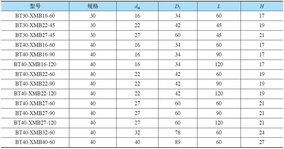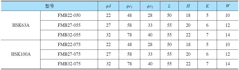 表2 普慧FMB面铣刀用刀柄规格尺寸(单位:mm)