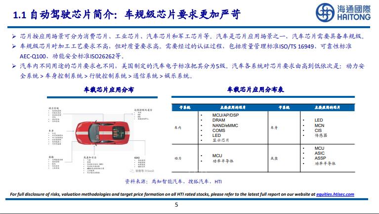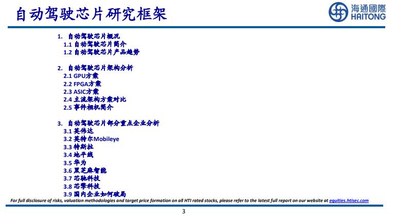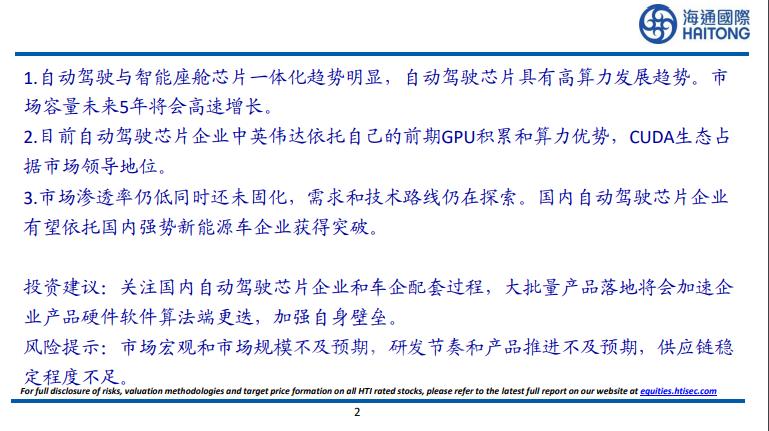 3.市场渗透率仍低同时还未固化,需求和技术路线仍在探索。国内自动驾驶芯片企业有望依托国内强势新能源车企业获得突破。