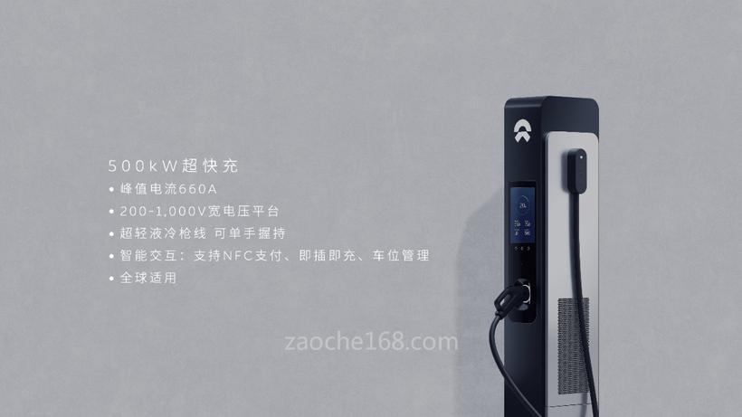 蔚来500kW超快充是200-1000V的宽电压平台,峰值电流可达660A,能够支持NFC卡的支付,即插即充,包括车位管理,并且全球通用。