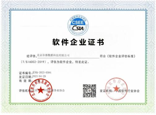 近日,经权威机构评估,谷器数据符合《软件企业评估标准》的有关规定,成功获取软件企业证书,这是谷器数据继2022年获此认定后的荣誉延续,同时,因谷器数据已通过软件产品评估认定,公司“双软企业”称号再次得以巩固。