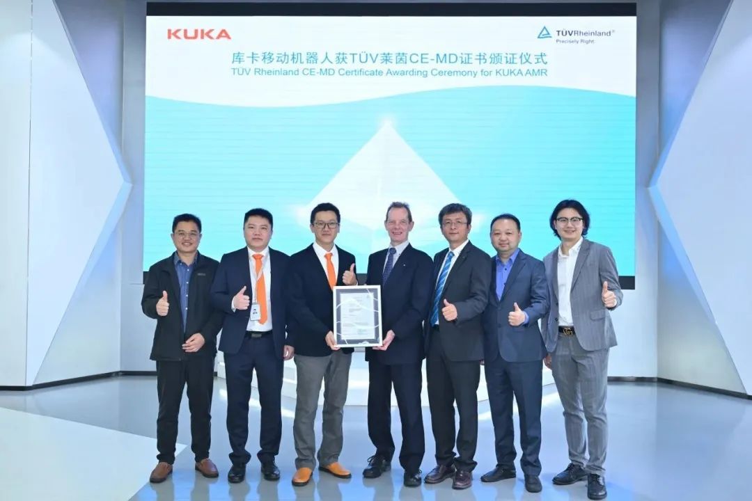 2024年1月19日,库卡机器人(广东)有限公司(以下简称“库卡”)与国际独立第三方检测、检验和认证机构德国莱茵TÜV大中华区(以下简称“TÜV莱茵”)举行战略合作签约仪式,并为库卡KMP 1500P潜伏顶升式自主移动机器人颁发了欧盟CE-MD机械指令符合性证书。