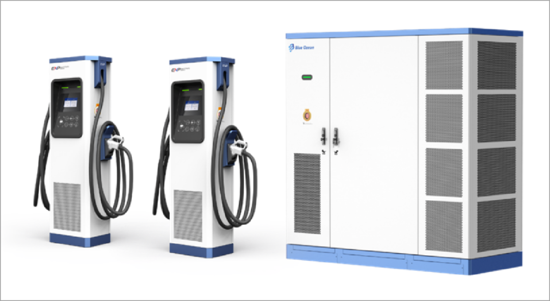 2022年,英飞源推出了具有IP67防护等级的40kW液冷电能变换模块,同时推出了800kW超大功率分体式全液冷储能充电系统。