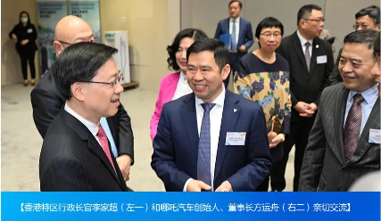 3月20日,“重点企业伙伴签约仪式在香港举行,哪吒汽车成为香港特区政府重点企业伙伴。仪式上,哪吒汽车创始人、董事长方运舟代表公司和香港特区政府签署协议,并与香港特区行政长官李家超、香港特区政府财政司司长陈茂波等官员亲切交流。据悉,香港特区政府将为哪吒汽车提供2亿港币补贴并协助基石轮投资2亿美金。