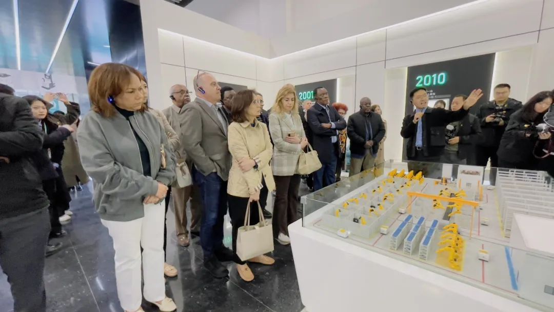 驻华使节团参观了埃斯顿多功能展厅,国际业务及相关负责人向其介绍了埃斯顿作为国产第一工业机器人品牌以及全球领先的智能制造提供商,在汽车、光伏、锂电池、金属加工、电子制造、建材家居、物流包装、食品烟酒、轨道交通、工程机械、特种车辆、船舶海工等细分行业携手行业领军品牌打造智能制造标杆产线及工厂的智造实力。