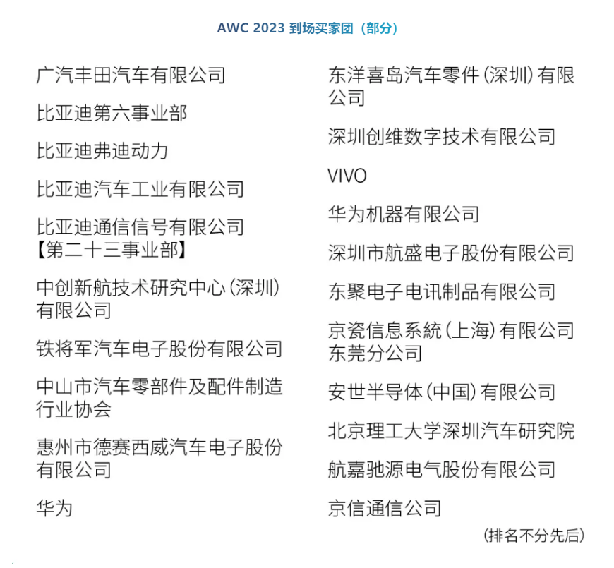 此外,主办方精准采集买卖双方需求,将邀请来自上汽、比亚迪、吉利、小鹏、广汽等主机厂以及TIER1、TIER2等上下游近万名专业买家出席,高效助力成交,打造精准高效的供需平台。