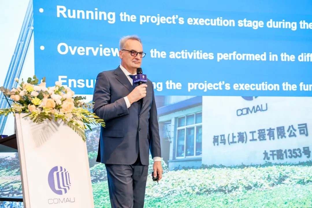 柯马全球工业运营总监Marco Manavello介绍了柯马全球的业务发展以及工业运营的组织架构。得益于在工程制造方面的国际布局以及富有竞争力国际化的供应链体系,柯马完全有能力为供应商带去更多的附加价值。同时他也对供应商在全球化、竞争力、标准化、创新、可持续发展等方面提出了重要期望。