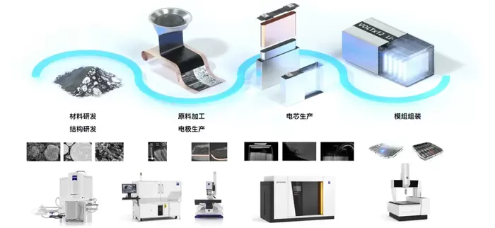 电池是电动车的“心脏”,关于动力电池的竞争是性能、安全性和成本的全面竞争。从电池的材料和结构研发,到原料加工、电极生产、电芯生产,再到模组组装,蔡司质量解决方案贯穿电池生产全过程,而不仅仅是抽检中。诸如工业显微镜分析电池材料和结构,X射线和CT设备发现电池单元和模块等密集部件中隐藏的缺陷,三坐标测量机和三维光学测量机保障电池托盘尺寸等。