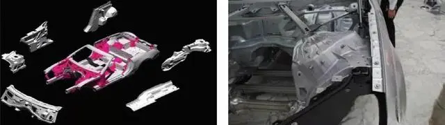 其中,A柱由两个铸造件构成,替代了原来的13个构件。前悬架固定座整合了7个构件,B柱内板整合了11个构件,后纵梁整合了22个构件,前防火墙整合了6个构件。总体来说,铝合金高压真空铸造悬架固定座已经在国外得到批量应用,达到了较好的轻量化效果,但国内还没有产品化。