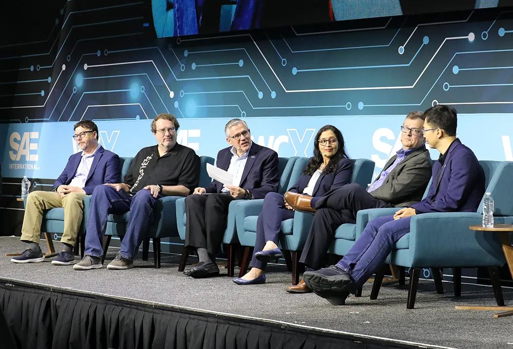 在底特律举行的 WCX 2024 领导力峰会上,发言人讨论了汽车行业未来的技术。(图源:SAE)