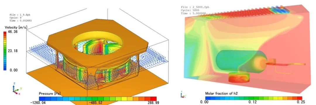 最后Cradle CFD具有强大的后处理模块,对于仿真结果可视化,内部流场,组分浓度,可生动形象的展示出来。