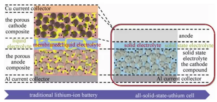 固态电池具有技术颠覆的潜力:传统液态电池体系成熟,但难以出现大幅性能突破。从兼顾高能量密度和本征安全性两方面出发,以锂金属作为负极,使用稳定、不易燃烧的固态电解质的全固态锂离子电池将成为未来最有技术颠覆潜力的电池。双极堆叠的可能性、锂金属负极的使用能保证其具备大幅领先的能量密度,其能量密度可以轻松突破400Wh/kg,固态电解质则能够保证优秀的安全性能。