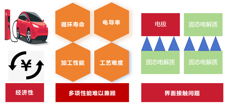 离子运输机制、锂枝晶生长机制、固-固界面问题是固态电池面临的三大问题:明确高离子电导率的实现条件是发展高性能固态电解质、提高全固态电池充放电速度的关键,目前主要通过掺杂、开发纳米尺度结构以及界面工程等手段来改善离子电导率,但目前业界对于离子运输机制的理解程度还不够,这对于充放电速度提升是一个挑战;此外,固态电解质虽然具有高机械强度,但仍然难以完全抑制锂枝晶的生长和实现锂金属的均匀沉积,锂金属可能在负极表面形成枝晶,甚至在固态电解质内部成核,导致电池短路,从而引发安全风险,这对固态电池的安全是一个较大的挑战;同时,由于缺少电解液的浸润,固-固界面问题直接影响固态电池的循环寿命等性能,尽管目前在工艺和材料维度有一些改进措施,但界面问题仍是固态电池最大的挑战。
