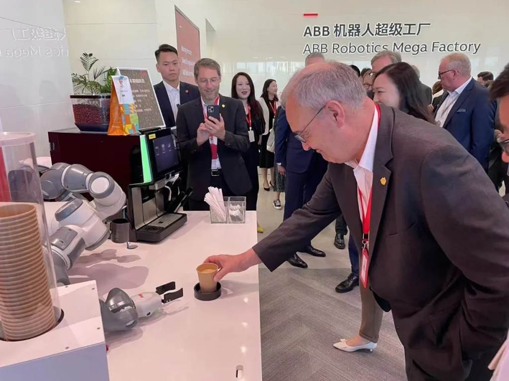访问伊始,ABB机器人便以一场充满科技感的欢迎仪式迎接了帕姆兰阁下及随行人员。ABB全球首款人机协作双臂机器人YuMi精准而优雅地为帕姆兰阁下调制了一杯香浓的咖啡,以此表达对其到来的热烈欢迎。瑞士既是创新的国度,又富于工匠精神。作为一家瑞士科技巨头,ABB机器人正是瑞士创新的典范。