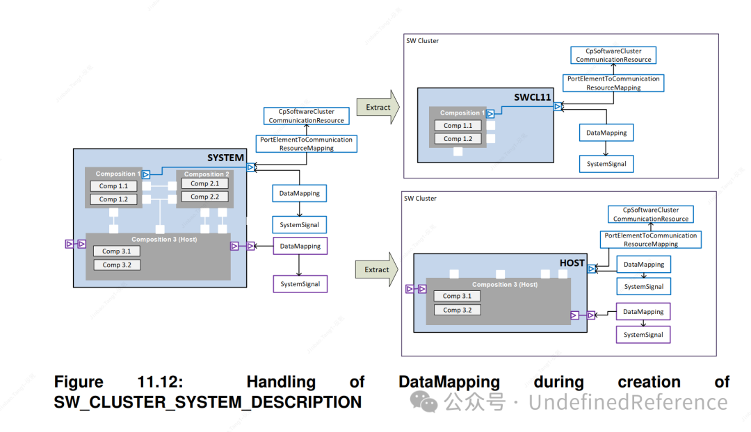 在CP的世界里,自顶向下,就是SWC->PORT->interface->data element->system signal,道理system signal之后就是取决于其mapping到哪里去了,可以mapping到通信-Com(data mapping),也可以mapping另一个组件的接口(service mapping)。如果是到Com的话,就是通过组包最后通过通信层(CAN/LIN/tcpip stack)发送出去;接收时则是反之!