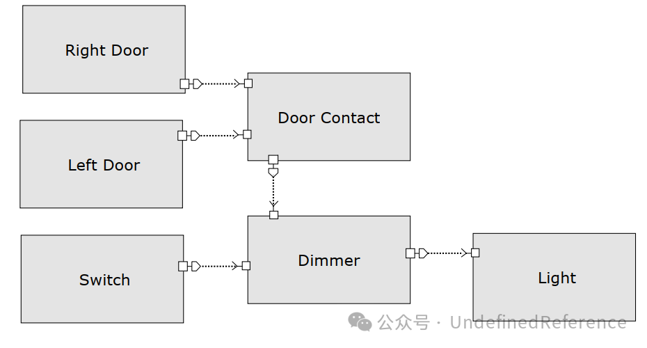 前面提到了信息传递是软件工程中必不可少的,结合前面提到的方法论,那CP中在信息传递的实例化又是怎么样的呢?以一个经典灯控制系统为例: