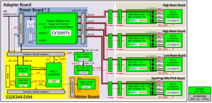 图示3-大联大世平以onsemi等厂商产品的汽车智能矩阵大灯方案的方块图