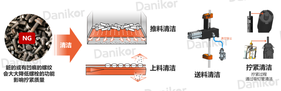 同时,阶梯式送钉机可配备多重清洁模块,从推料、上料、送料,到拧紧,通过多维度清洁方式,全程确保螺钉的洁净度,避免杂质影响最终拧紧质量。