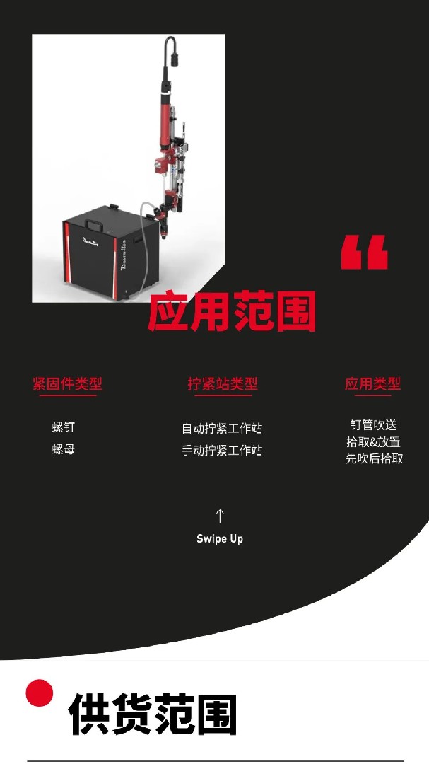 在标准拧紧工具以外,我们深刻理解一套成熟的、精心设计的送钉系统,会对拧紧工作站的整体性能和表现产生的巨大影响。所以我们决心推出自主品牌、自主设计的送钉系统方案,助力客户的拧紧工作站实现: