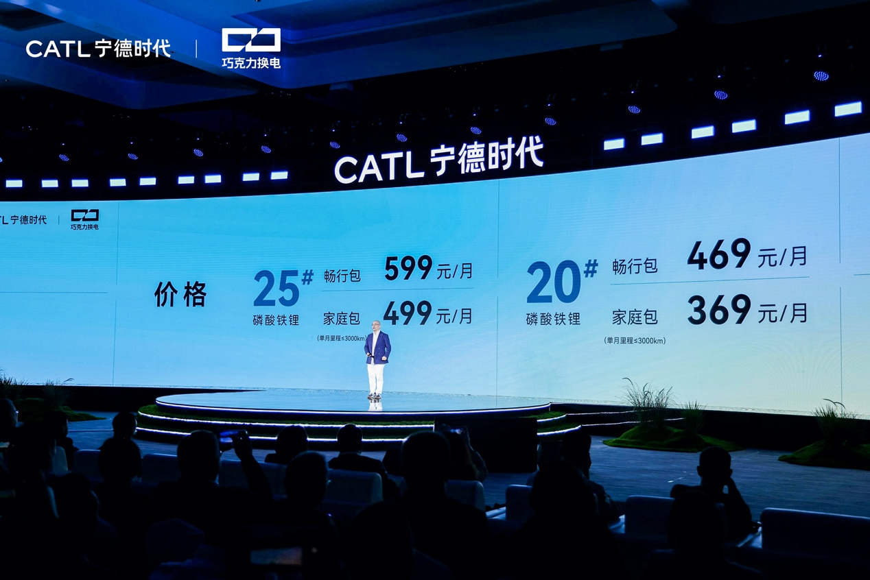 宁德时代公布了率先推向市场的“磷酸铁锂版”换电电池租赁价格:25#换电畅行包,每月不限里程599元,家庭包月租499元;20#换电畅行包,月租469元,家庭包月租369元。