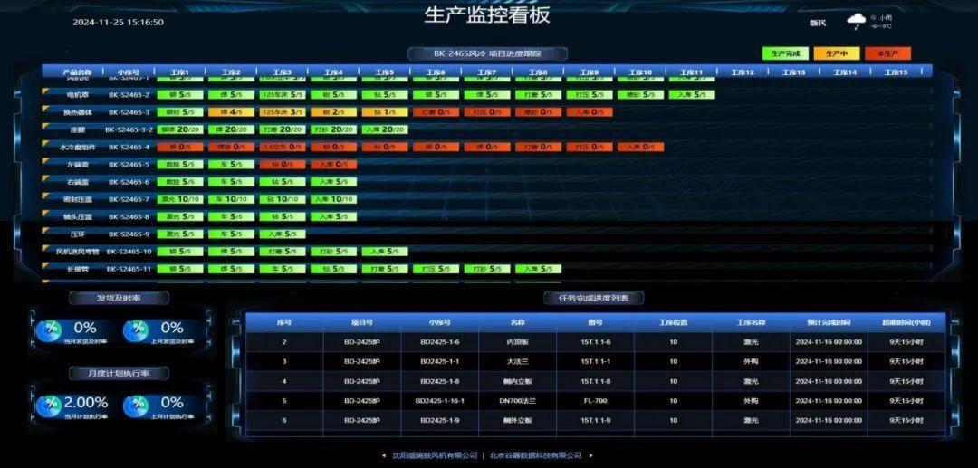 谷器数据结合制造企业的生产管理痛点,通过技术对生产流程的优化和赋能打破生产管理“盲盒”现状,让沈阳盛晞鼓风机生产管理透明化、产品质量可追踪、员工报工统计高效化等等几个企业最关心的问题得到了完美解决。
