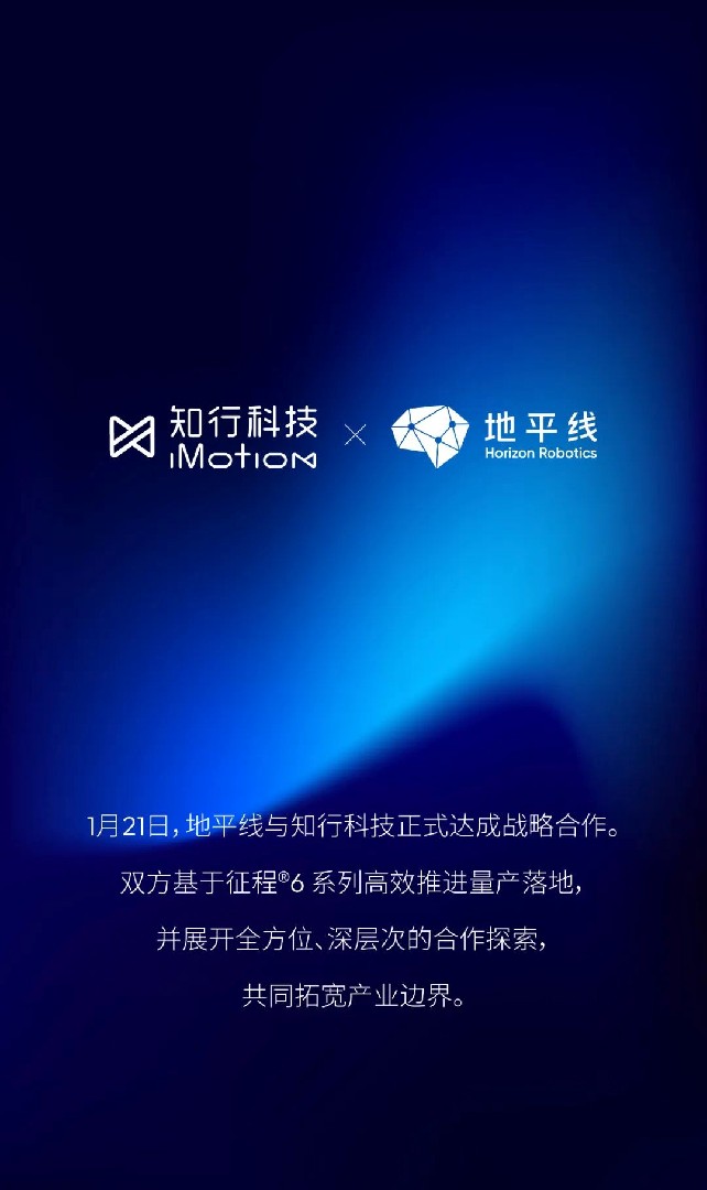 1月21日,地平线与知行科技正式签署战略合作协议。双方将在汽车智能化技术与产品领域深度合作,为车企客户提供更优质、创新的智驾产品和服务,携手开拓国内外智能驾驶市场,为智驾行业生态的可持续发展贡献力量。
