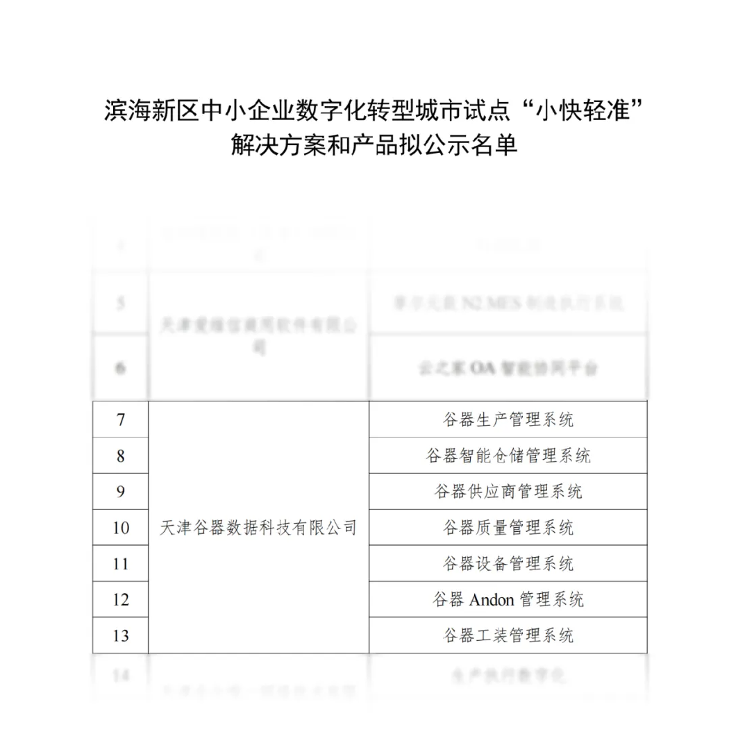 近日,天津市滨海新区工业和信息化局组织开展的“小快轻准”解决方案和产品遴选工作落下帷幕。经过公开征集、服务商自主申报、形式审查、专家评审以及研究审议等一系列严格程序,谷器数据的七款产品成功入选滨海新区中小企业数字化转型城市试点“小快轻准”解决方案和产品名单,这标志着谷器数据在助力中小企业数字化转型方面的卓越成果得到了权威认可。
